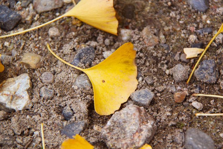 Keywords: fallen leaves yellow leafy grounds lands brown soil stones autumn fall season flora trees plants foliage abstracts backgrounds textures patterns nature natural