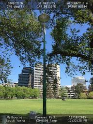 I was shocked to discover the faulty park lamp hanging precariously by a wire at Fawkner Park, South Yarra, Melbourne, VIC, Australia – “COM0590” ID number on sticker on lamp (see photo enclosed). Opposite 499 St Kilda rd.