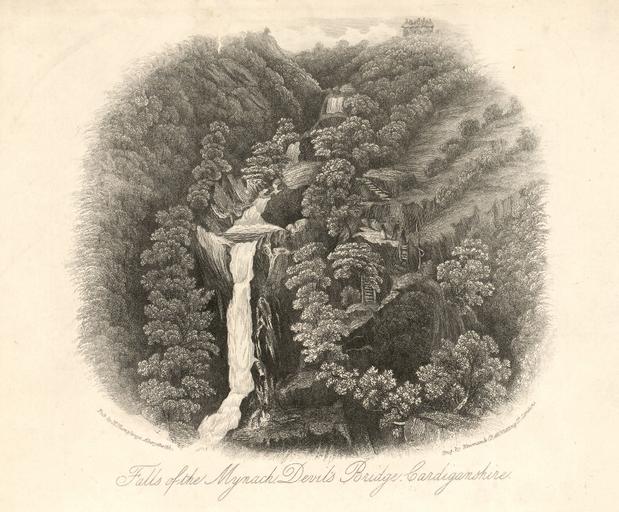 Keywords: Falls of the Mynach, Devil's Bridge, Cardiganshire.jpeg accession number J Newman Co credit line Size mm 228 135 exhibition history Institution National Library of Wales Technique print engraving bw object history object type PD-old-70-1923 place of creation place of discovery 1133406 Falls of the Mynach Devil's Bridge Cardiganshire Uploaded with GWToolset Falls of the Mynach Devil's Bridge Cardiganshire http //dams llgc org uk/behaviour/llgc-id 1133406/fedora-bdef image/reference Images uploaded as part of NLW - WMUK collaboration Welsh Landscape Collection 1860s Mynach Falls Hafod Arms Hotel |
