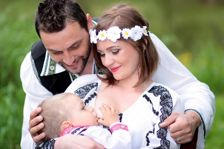 Keywords: family breastfeeding mom dad son traditional costume love happiness hug
