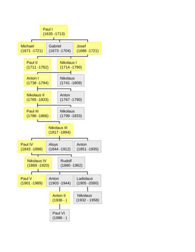 | Keywords: Family Tree House Esterhazy2.svg Stammbaum der Fürsten Esterházy Family_Tree_House_Esterhazy jpg 2008-09-12 13 52 UTC derivative work StefanBean <span class signature-talk >talk</span> Family_Tree_House_Esterhazy jpg StefanBean at http //de wikipedia org de wikipedia Family_Tree_House_Esterhazy jpg PD-user-de original upload log This image is a derivative work of the following images Image Family_Tree_House_Esterhazy jpg licensed with PD-user-de 2008-03-14T08 52 59Z File Upload Bot Magnus Manske 290x650 116274 Bytes <nowiki> de wikipedia Stammbaum der Fürsten Esterházy Transferred from http //de wikipedia org de wikipedia Original text selbst erstellt 2007-09-01 fi</nowiki> Uploaded with derivativeFX House of Esterházy |