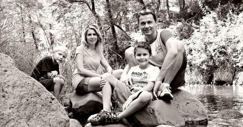 | Keywords: family vacation togetherness happy children parents husband wife kids siblings boys friendship families young four people mom dad mother father smiles smiling laughing travel holidays outdoors nature river trees sitting rocks stones rocky wild streams flora plants black and white lifestyle relaxing leisure fun |