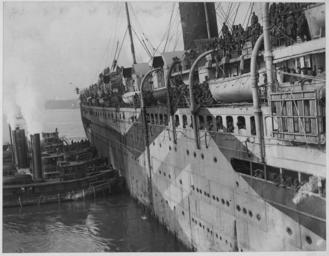 | Keywords: Famous (African American) regiment arrives home on the France. The 369th Infantry of New York C . . . - NARA - 533546.tif Scope and content The full caption for this item is as follows Famous African American regiment arrives home on the France The 369th Infantry of New York City better known as the old 15th on the decks of the transport These men covered themselves with glory were the first American soldiers to reach the Rhine never had one of their men captured by the Hun and received the Croix de Guerre for their bravery in action General notes 533546 Local identifier 165-WW-127 60 War Department 1789 - 09/18/1947 NARA-Author Western Newspaper Union Photographer 556413 <br /> Still Picture Records Section Special Media Archives Services Division NWCS-S National Archives at College Park 8601 Adelphi Road College Park MD 20740-6001 1919-02-10 Record group Record Group 165 Records of the War Department General and Special Staffs 1860 - 1952 Record group ARC 494 American Unofficial Collection of World War I Photographs compiled 1917 - 1918 Series ARC 533461 File unit File unit ARC Variant control numbers NAIL Control Number NWDNS-165-WW-127 60 yes Other versions NARA-cooperation PD-USGov 369th Infantry Regiment United States African American soldiers Photographs of World War I Soldiers of the United States |