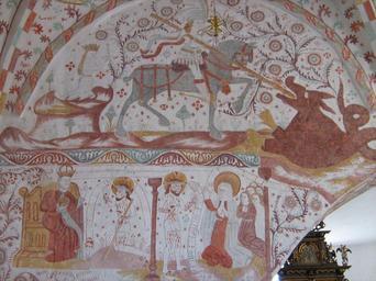 Keywords: Fanefjord George dragon.JPG en Fanefjord Church Møn Denmark Fresco of George and the dragon own Ipigott 2009-09-09 Møn Frescos in Fanefjord Church Paintings of Saint George and the Dragon