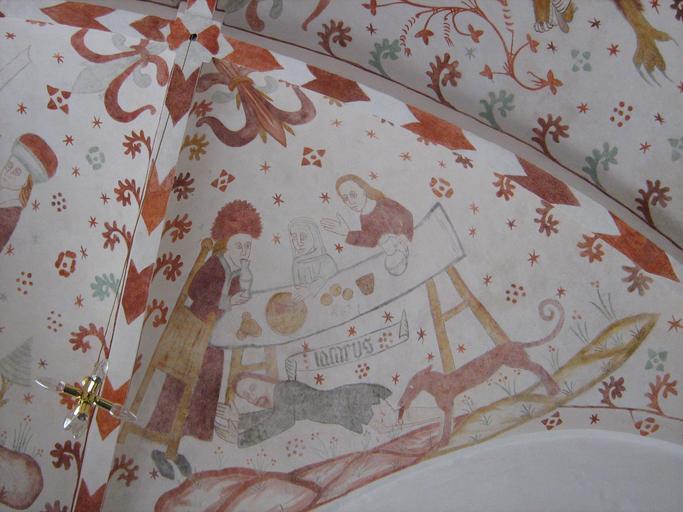 Keywords: Fanefjord Rich man Lazarus.JPG en Fanefjord Church Møn Denmark Fresco of the rich man and Lazarus own Ipigott 2009-09-09 Lazarus and Dives Banquets in art Tables in art Møn Frescos in Fanefjord Church
