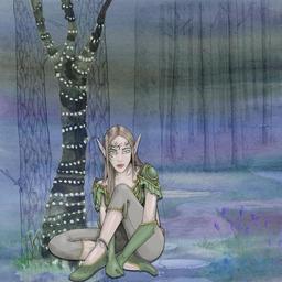 Keywords: fantasy fairytale elve girl dress woods dark mysterious beautiful tree lights kingdom woman young magic mystery wise magical unusual legend fun myth sitting book cover watercolor weird science fiction