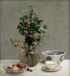 | Keywords: Fantin Latour Vase of Hawthorn Bowl of Cherries Japanese Bowl Cup Saucer.jpg Artwork Q18666746 Creator Henri Fantin-Latour 1872 Oil on canvas 60 x 55 cm Institution Dallas Museum of Art Dallas Texas accession number 2001 5 FA object history credit line Dallas Museum of Art Foundation for the Arts Collection Mrs John B O'Hara Fund and gift of Mrs Bruno Graf by exchange unknown museum website PD-old-100 Paintings in the Dallas Museum of Art Oil still life paintings of fruits by Henri Fantin-Latour 1872 paintings Oil still life paintings of flowers by Henri Fantin-Latour Still life paintings of tableware 1870s still-life paintings 19th-century still life paintings of flowers in glass vases |