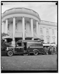 | Keywords: Farley and philatelic truck at white house.tif Photograph Harris Ewing photographer en Farley and philatelic truck at White House Washington D C May 9 The Post Office's new philatelic stamp truck which began a tour of the United States today following ceremonies at the White House was given a final inspection by the Post Master General James A Farely before it started out from the White House The truck containing stamp frames of all U S stamp issues a miniature stamp press and souvenir engravings showing the White House will visit cities and towns in every state of the Union 1939 May 9 1 negative glass 4 x 5 in or smaller Institution Library of Congress Library of Congress Prints and Photographs Division Washington D C 20540 USA object history credit line accession number LC-DIG-hec-26655 digital file from original negative Call Number LC-H22-D- 6545 P P Title from unverified caption data received with the Harris Ewing Collection Gift; Harris Ewing Inc 1955 General information about the Harris Ewing Collection is available at http //hdl loc gov/loc pnp/pp hec Temp note Batch five LOC-Image hec 26655 Rights Advisory No known restrictions on publication Farley and philatelic truck at White House jpg Custom license marker 2013 06 09 PD-Harris-Ewing HABS images of the White House History of the White House |