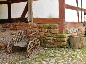 | Keywords: farm fachwerkhaus agriculture farmhouse truss hof rustic eifel rural historically open air museum kommern paving stones cart architecture germany past work history wheel barrow old antique masonry trough water trough simply way of life farmers |