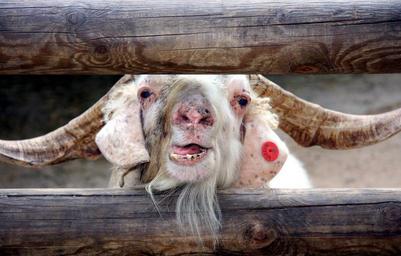Keywords: farm goat animal mammal domestic livestock countryside fence enclosure horn horned