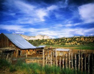 Keywords: farm utah rural countryside sky clouds barn shed buildings mountains scenic landscape fence nature outside