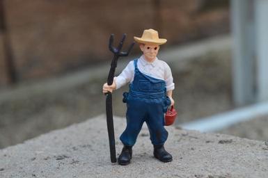 Keywords: farmer pitchfork overalls worker laborer action figure doll toy farming man male