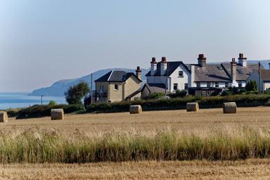 Keywords: farmland hay agriculture farm countryside summer field nature rural landscape farming harvest straw bale yellow meadow crop natural outdoor agricultural sky scenic golden scenery seaview