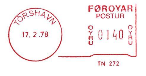 Keywords: Faroe Islands B5.jpg en Meter stamp catalog image Faroe Islands type B5 Richard Stambaugh Richard Stambaugh 2010-02-03 Meter stamps of the Faroe Islands