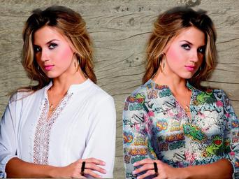 Keywords: fashion chic clothing identical female blouse hand fashionable elegant finger fingernails modern section wood beauty shirt woman twins