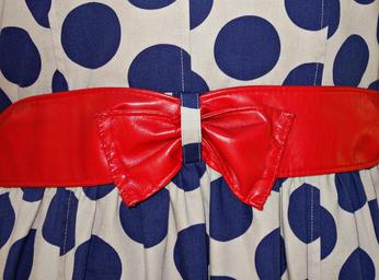 Keywords: fashion dress sash bow polka dot woman style stylish blue polka dot dress red sash blue red white