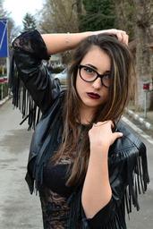 Keywords: fata portret ochelari sexy seducție frumusețe jachetă de piele parc