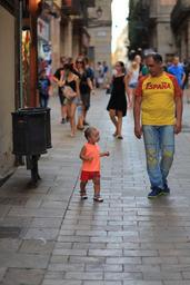 Keywords: father baby barcelona spain people street walk
