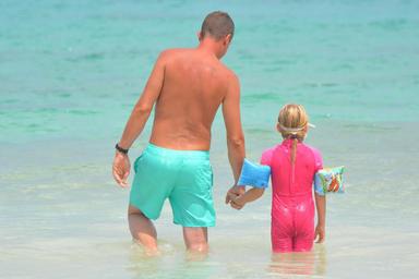 Keywords: father child people sea ocean man