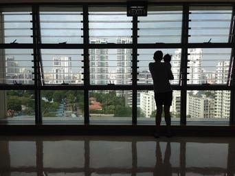 Keywords: father child silhouette dad kid toddler baby city view