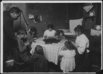 | Keywords: nara:arcid=523500 u.s. national archives usnationalarchives lewis hine lewishine blackandwhite monochrome photo border black and white Original Caption: Father hanging around the home while family works on feathers. Said, I not work. Got some sickness. Dunno what. Mother, Millie, 16, Jimmie 11, Mary 12, Camille 5 all work. They said, Camille can tie feathers, but she don't wanto. If all work we make $4, $5, or $6 a week. Dirty floor. Vermin abounded. Garbage standing uncovered near the work. New York City, December 1911 U.S. National Archives’ Local Identifier: 102-LH-2705 Photographer: Hine, Lewis Subjects: Child Labor National Child Labor Committee Working Conditions Factory Persistent URL: research.archives.gov/description/523500 Repository: Still Picture Records Section, Special Media Archives Services Division (NWCS-S), National Archives at College Park, 8601 Adelphi Road, College Park, MD, 20740-6001. For information about ordering reproductions of photographs held by the Still Picture Unit, visit: www.archives.gov/research/order/still-pictures.html Reproductions may be ordered via an independent vendor. NARA maintains a list of vendors at www.archives.gov/research/order/vendors-photos-maps-dc.html Access Restrictions: Unrestricted Use Restrictions: Unrestricted Original Caption: Father hanging around the home while family works on feathers. Said, I not work. Got some sickness. Dunno what. Mother, Millie, 16, Jimmie 11, Mary 12, Camille 5 all work. They said, Camille can tie feathers, but she don't wanto. If all work we make $4, $5, or $6 a week. Dirty floor. Vermin abounded. Garbage standing uncovered near the work. New York City, December 1911 U.S. National Archives’ Local Identifier: 102-LH-2705 Photographer: Hine, Lewis Subjects: Child Labor National Child Labor Committee Working Conditions Factory Persistent URL: research.archives.gov/description/523500 Repository: Still Picture Records Section, Special Media Archives Services Division (NWCS-S), National Archives at College Park, 8601 Adelphi Road, College Park, MD, 20740-6001. For information about ordering reproductions of photographs held by the Still Picture Unit, visit: www.archives.gov/research/order/still-pictures.html Reproductions may be ordered via an independent vendor. NARA maintains a list of vendors at www.archives.gov/research/order/vendors-photos-maps-dc.html Access Restrictions: Unrestricted Use Restrictions: Unrestricted |