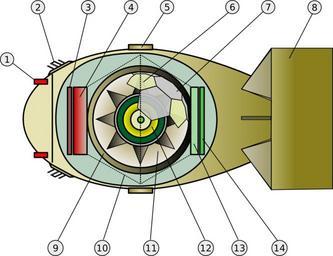 | Keywords: Fatman inner1.png Fatman inner1 svg Interior of the Fatman bomb Thanks to en User Fastfission for the precious information about the design and plans of the bomb Done with Inkscape 0 41 This is really not supposed to be accurate the interior is still classified but it gives a rough idea of the main parts of the implosion bombs Gadget and Fat Man AN 219 destruct fuse Archie radar antenna Plate with batteries to detonate charge surrounding nuclear components X-Unit a firing set placed near the charge Hinge fixing the two ellipsoidal parts of the bomb High explosive pentagonal lens 12 units around the core made of high and low velocity explosive High explosive hexagonal lens 20 units around the core made of high and low velocity explosive California Parachute tail aluminium Dural casing ~140 cm inner diameter Cones that contained the whole sphere Explosive lenses low and high velocity Nuclear material see other figure for details about the different layers Plate with instruments radars baroswitches and timers Barotube collector derivative works Fatman inner1 svg Cross sections of nuclear weapons Fat Man Diagrams labelled with numbers only |