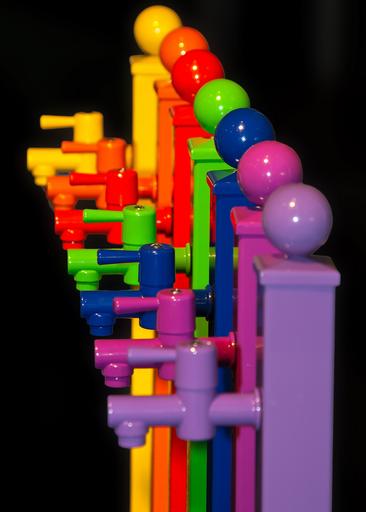 Keywords: faucet colorful colored plastic farbenspiel object plastic color gartendeko bright rainbow colors green yellow red