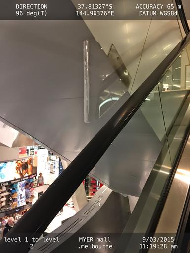 I hope an accident doesnt happen due to this faulty / damaged preventative device that prevents shoppers head from getting themselves killed by jamming their heads between the ceiling and the escalator.