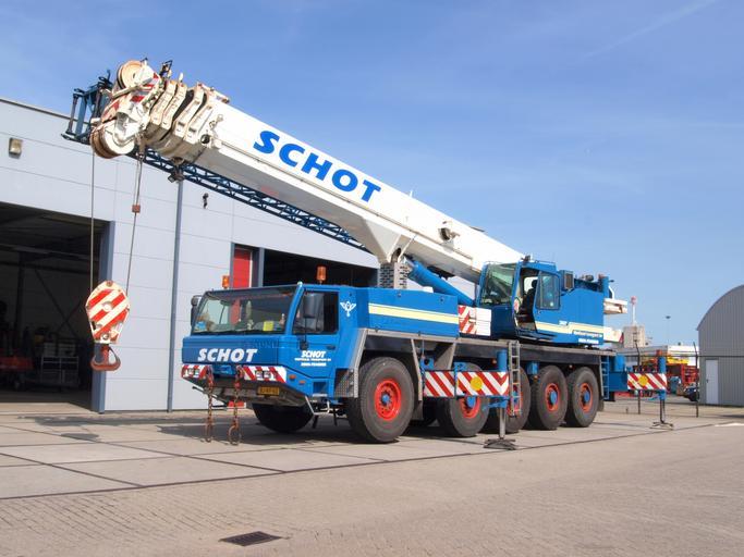 Keywords: Faun crane Schot verticaal transport bv.JPG Faun crane Schot verticaal transport bv Own 2009-05-25 10 12 47 AlfvanBeem CC-Zero Tadano Faun vehicles Construction equipment photographed by Alf van Beem
