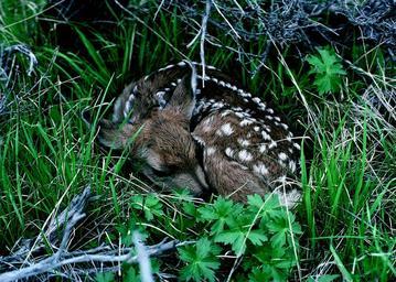 Keywords: fawn baby deer grass young cute wildlife wild spots small sleeping newborn