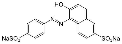 | Keywords: FD&C Yellow 6.svg Sunset Yellow FCF FD C Yellow No 6; C I 15985; Orange Yellow S en Gelborange S; Sunsetgelb FCF; E 110 Own Created with Inkscape 2008-05-25 Yikrazuul Azo dyes Food colorings Phenols Sulfonic acids Polycyclic aromatic compounds Azobenzenes Sunset Yellow |