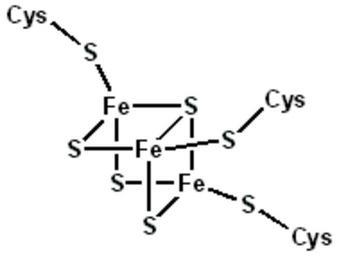 Keywords: Fe3S4.png Structural drawing of Fe3S4 cluster 2006-03-06 own assumed Scienthomas Check categories 2008 November 14 en wikipedia Ferredoxin pt wikipedia Ferredoxina Iron-sulfur compounds