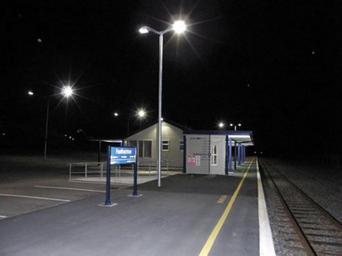 Keywords: 41 07S 175 20E Featherston railway station is a single-platform, urban railway station serving the town of Featherston in the Wairarapa district of New Zealand. Opened 16 October 1878. Attribution: Palmeriain