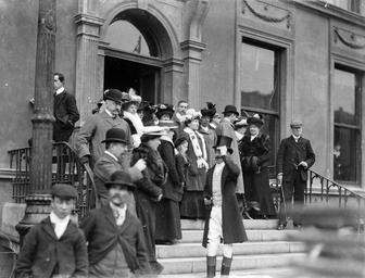 | Keywords: hunt meet huntmeet imperial hotel imperialhotel the mall themall ireland munster thursday 19 february 1903 1900s a.h. poole ahpoole arthur henri poole arthurhenripoole poole collection poolecollection glass negative glassnegative fur stoles top hat tophat boots hunting veil hats waterford national library of ireland nationallibraryofireland blackandwhite monochrome black and white Elegant onlookers on the steps of the Imperial Hotel, The Mall, Waterford at the start of a Hunt Meet. Particularly love the Burlington Bertie chap in the top hat! This is our third photo taken at the Imperial Hotel. Thanks very much to Niall McAuley and ofarrl for helping us to get the location for the Imperial Hotel (now occupied by the Tower Hotel on The Mall) spot on! Date: Thursday, 19 February 1903 NLI Ref.: P_WP_0414 Elegant onlookers on the steps of the Imperial Hotel, The Mall, Waterford at the start of a Hunt Meet. Particularly love the Burlington Bertie chap in the top hat! This is our third photo taken at the Imperial Hotel. Thanks very much to Niall McAuley and ofarrl for helping us to get the location for the Imperial Hotel (now occupied by the Tower Hotel on The Mall) spot on! Date: Thursday, 19 February 1903 NLI Ref.: P_WP_0414 |