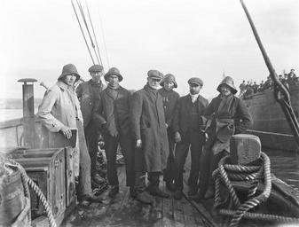 | Keywords: fethard lifeboat disaster fethardlifeboatdisaster fethard lifeboat fethardlifeboat norwegian crew norwegiancrew crew the mexico themexico drownings ireland tuesday 24 february 1914 1910s sailors a.h. poole ahpoole poole collection poolecollection arthur henri poole arthurhenripoole souwester munster norwegians captain skipper ole edvin eriksen oleedvineriksen waterford national library of ireland nationallibraryofireland blackandwhite monochrome black and white These are the crew members of a Norwegian vessel, who survived what is known as the Fethard Lifeboat Disaster. These men were on board their vessel, The Mexico (with its cargo of mahogany and cedar from Mexico), when it ran aground on the Keragh Islands, Co. Wexford on Friday, 20 February 1914. The Fethard Lifeboat, Helen Blake, came to their rescue through a storm was destroyed with the loss of 9 of the 14 lifeboatmen. For those of you wanting to know more about this disaster, Niall McAuley provided a link to this PDF recounting the whole story, and a tentative identification of the older sailor in the middle as the captain of The Mexico, Ole Edvin Eriksen, of Frederikshald, Norway... Fairly happy now that this photo was taken at Waterford, thanks to John Spooner's contribution from a report in The Times of 24 February that said: "The tug with the nine men on board and the body of the man who had died on the island arrived at Waterford at 4 o'clock. A great crowd assembled on the quays to welcome the rescuers." Date: Tuesday, 24 February 1914 NLI Ref.: P_WP_2536 These are the crew members of a Norwegian vessel, who survived what is known as the Fethard Lifeboat Disaster. These men were on board their vessel, The Mexico (with its cargo of mahogany and cedar from Mexico), when it ran aground on the Keragh Islands, Co. Wexford on Friday, 20 February 1914. The Fethard Lifeboat, Helen Blake, came to their rescue through a storm was destroyed with the loss of 9 of the 14 lifeboatmen. For those of you wanting to know more about this disaster, Niall McAuley provided a link to this PDF recounting the whole story, and a tentative identification of the older sailor in the middle as the captain of The Mexico, Ole Edvin Eriksen, of Frederikshald, Norway... Fairly happy now that this photo was taken at Waterford, thanks to John Spooner's contribution from a report in The Times of 24 February that said: "The tug with the nine men on board and the body of the man who had died on the island arrived at Waterford at 4 o'clock. A great crowd assembled on the quays to welcome the rescuers." Date: Tuesday, 24 February 1914 NLI Ref.: P_WP_2536 |