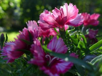 Keywords: federnelke plant flowers back light bloom pink red green carnation nature