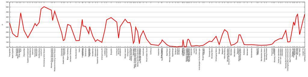 | Keywords: Feengrotten-Kyffhaeuser-trail-height-profile.svg height profile of Feengrotten-Kyffhaeuser hiking trail own work created with gnuplot based on coordinates obtained from Google Earth 2006-12-24 Michael Weiser Public domain Feengrotten-Kyffhäuser-Weg altitude profiles |
