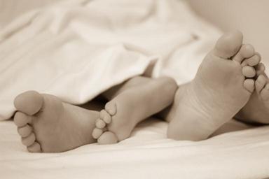 Keywords: feet bed sleep in love sex erotism toes sheets exhausted man and woman