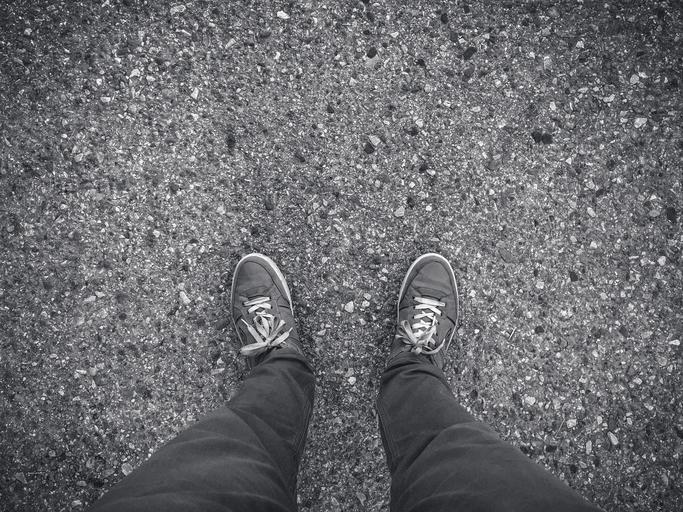 Keywords: feet concrete sneakers man lifestyle foot shoes legs outdoor jeans young youth style standing person male asphalt road ground