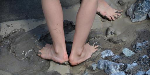 Keywords: feet mud barefoot close