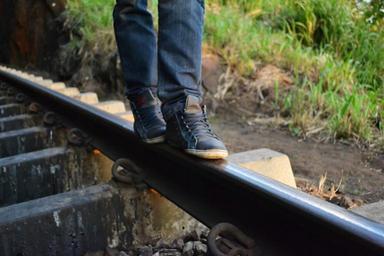 Keywords: feet shoes shoe legs jeans walk rail road rail rails train transport path tunnel sri lanka ceylon mawanella kadugannawa