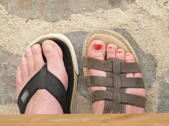 Keywords: feet shoes ten love pair couple sandal flip flops toenail lacquered