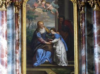 | Keywords: Fegersheim-St Maurice063.JPG fr Alsace Bas-Rhin Fegersheim Église Saint-Maurice Tableau Sainte Parenté de l'autel secondaire sud 1780-1847 2012 own Ralph Hammann cc-by-sa-3 0 Artwork / Œuvre d'art / Kunstwerk oil canvas cm 240 125 Eglise Saint-Maurice Fegersheim Autel secondaire nord Vierge à l'enfant IM67000152 object history Tableaux d'autel signés par Joseph-Maximilian Seelenmayer et datés de 1847 other versions Ralph Hammann PD-old accession number Autel de la Sainte Parenté Fegersheim Photographs of Fegersheim by Ralph Hammann Taken with Canon PowerShot SX20 IS Objets monuments historiques in Bas-Rhin church paintings Neoclassical church paintings in Alsace 19th-century church paintings in Alsace Paintings of Education of Virgin Mary Paintings of Saint Anne 1847 oil on canvas paintings in France 1847 works in Alsace Paintings of putti in France 19th-century paintings of putti |