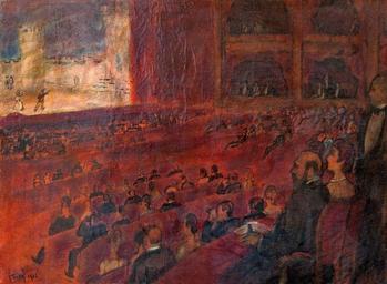 | Keywords: Feiks - In Theater.jpg Színházban In Theater Oil on canvas 76X100cm private collection http //www parisigaleria hu/content/download/Aukcios_katalogus_2013_dec_uj2 pdf PÁRISI GALÉRIA MŰVÉSZETI SZALON ÉS AUKCIÓSHÁZ Budapest before the auction on 2013-12-05 Creator Jenő Feiks PD-old-auto 1939 Other versions Commonist Jenő Feiks Parisian Gallery Art Salon and Auction House Budapest |