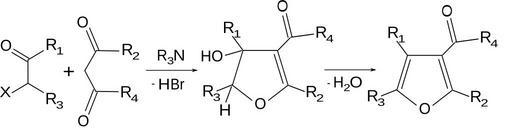 Keywords: Feist-Benary reaction.svg en Feist-Benary reaction el Feist-Benary reaction own Xhmikos 3/8/2009 Feist-Benary synthesis