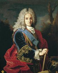 | Keywords: Felipe V de España, por Jean Ranc (Real Academia de Bellas Artes de San Fernando).JPG Retrato del rey Felipe V de España 1683-1746 Éste lienzo es una replica exacta y firmada por el autor del retrato oficial que ejecutó del soberano en 1723 y que se conserva actualmente en el Museo del Prado Y el monarca aparece vestido con una casaca de terciopelo bordado y con media armadura luciendo la insignia de la Orden del Toisón de Oro y la banda de la Orden del Espíritu Santo del reino de Francia y sosteniendo una bengala en su mano derecha Circa 1723 oil canvas Size cm 86 110 Institution Real Academia de Bellas Artes de San Fernando http //www realacademiabellasartessanfernando com/assets/docs/guia_museo/guia_museo pdf object history exhibition history credit line accession number 568 http //ceres mcu es/pages/Main PD-old-100 Portrait paintings of Philip V of Spain Paintings by Jean Ranc 18th-century portrait paintings in the Royal Academy of Fine Arts of San Fernando Painted portraits of kings of Spain in the Royal Academy of Fine Arts of San Fernando Uploaded with UploadWizard |