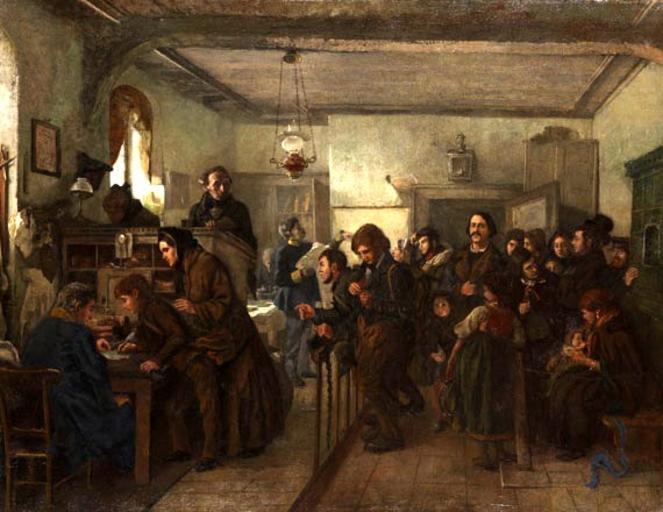 | Keywords: Felix Schlesinger Im Auswanderungsbüro.jpg  Im Auswanderungsbüro Öl auf Leinwand 81 x 106 cm http //www kettererkunst com/ Ketterer Kunst turn of the century 20 Felix Schlesinger 1833 “1910 PD-old-100 Images from Ketterer Kunst Felix Schlesinger Emigration in art 1900 Offices in art |