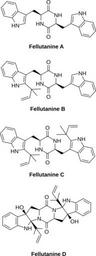 Keywords: Fellutanine A-D.svg en Structures of the 2 5-diketopiperazines Fellutanine A B C and D 2016-02-29 own Alandb other versions cc-zero Diketopiperazines Indole alkaloids