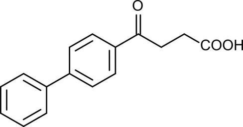 Keywords: Fenbufen.svg chemical structure of Fenbufen; made with BKchem Own 2007-06-06 Tim Q Wells Fenbufen