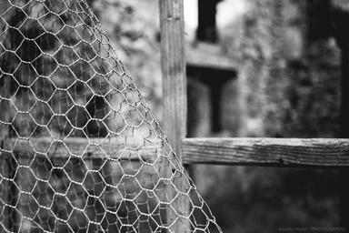 Keywords: fence closing window ruins black and white